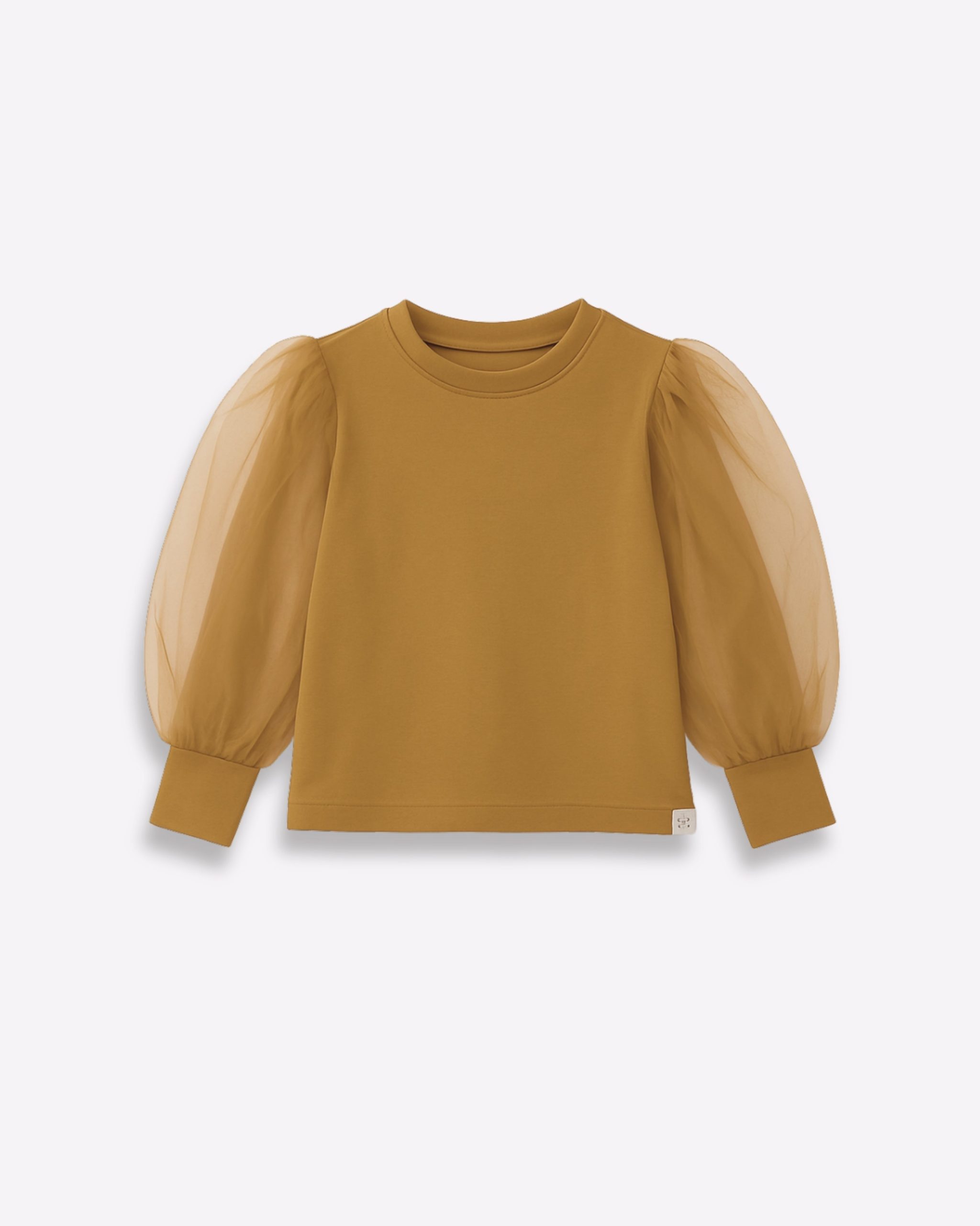 Care: Machine wash cold on a gentle cycle with similar colors. Use mild detergent. Do not bleach. Tumble dry low or hang to dry. Warm iron on reverse if needed. Do not iron the tulle sleeves; if required, use light steam from a distance.