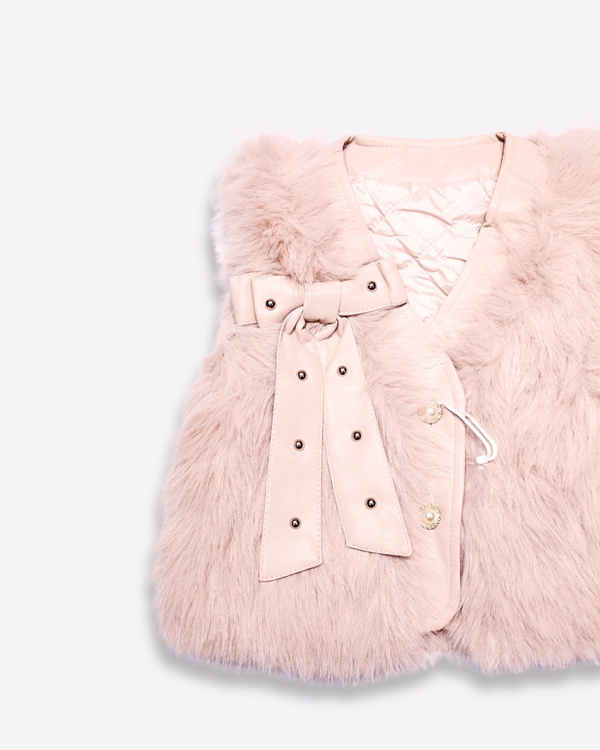 Description: Step into cozy style with our Classic White Faux Fur Vest featuring an adorable patch accent on the chest. The sleeveless design layers easily over tees, turtlenecks, sweaters, and dresses, while front snap buttons ensure quick dressing. Two front pockets hold little essentials. Plush texture adds warmth without weight, making it ideal for park visits, playdates, school runs, family outings, and photo-ready moments in cooler weather.